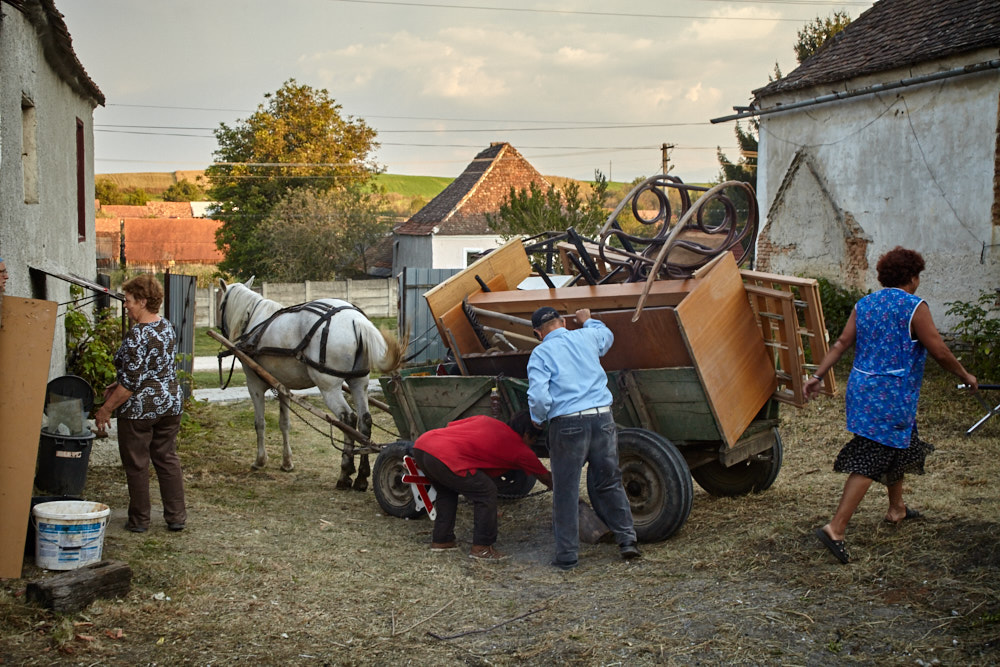 Es sind teilweise sehr schwere Dinge dabei, die wir zu zweit auf den Wagen wuchten. Ich habe begonnen, die Werkstatt auszuräumen und von dort zwei Elektrorollstühle zum Eisenhaufen geschleift, die hängen wir dann am Schluß noch abenteuerlich kopfüber auf den Rest der Ladung. Es sind drei Fuhren nötig, bis wir den Haufen entsorgt haben. Mittlerweile hat sich auch eine große Menge Altholz angesammelt, da würden wir wochenlang brauchen, das mit dem Lagerfeuer zu entsorgen. Wiederum frage ich Constantin, wiederum einen Anruf später gibt es einen Abnehmer. Eine alte Frau kann es brauchen, um im Winter damit zu heizen. Wieder fährt der ‚Fuhrunternehmer‘ mit der Carutsa vor. Diemal ist die Frau vom Constantin dabei. Sie ist eine Siebenbürger-Sächsin und spricht deutsch. Trotz des hohen Alters helfen alle mit, das Holz aufzuladen und auch diesmal braucht es mehrere Fuhren, bis das Holz vom Hof ist. Dabei sind wir noch lange nicht fertig mit dem Ausräumen der Werkstatt.