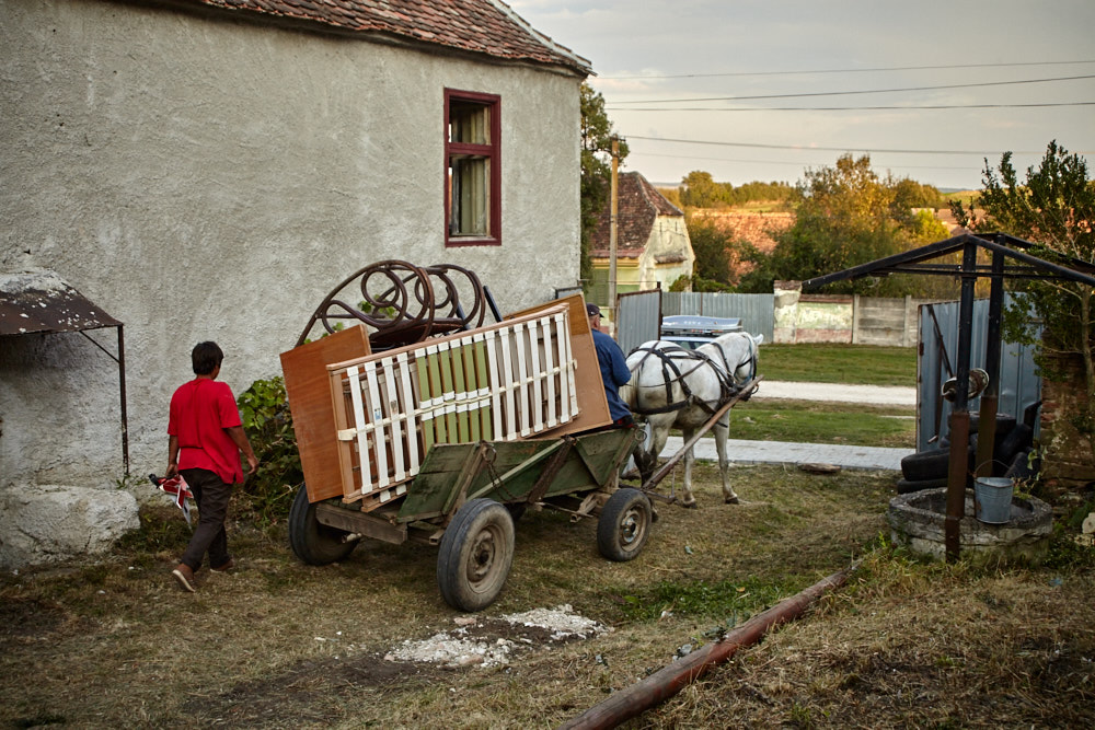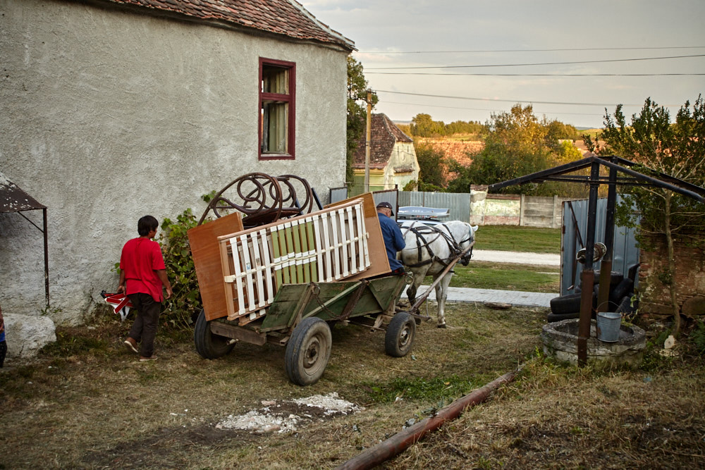 Alsbald ist auch Constantin zur Stelle und wir beginnen da, wo wir gestern aufgehört haben. Gestern Abend hatte ich Martin gefragt, wie wir das Altmetall loswerden können. Er meinte resigniert: ‚Als ich damals den Rettungswagen verschenken wollte, habe ich den Alteisensammler angerufen, aber der kam nicht. War wohl zu billig..‚ Unser Berg an Altmetall ist mittlerweile schon beträchtlich groß. Ich frage Constantin, ob er jemanden kennt. Der holt das Handy raus und keine 20 Minuten später kommt eine Frau herein und bittet mich, das Auto vor der Einfahrt wegzufahren. Draußen steht eine ‚Carutsa‚, ein für Rumänien typisches Pferdefuhrwerk. Nachdem das Auto aus dem Weg ist, fährt das Gespann in den Hof, dreht und bleibt neben dem Alteisenhaufen stehen. Die Frau und ich laden auf, ihr Mann bleibt auf dem Kutschbock und gibt Anweisungen. Er sei vor kurzem am Leistenbruch operiert worden, entschuldigt er sich.
