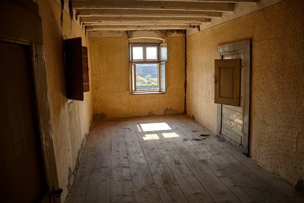 Wir suchen uns einen Parkplatz und checken ein. Das alte Schulhaus ist imposant und sehr schön renoviert. Wir müssen ein wenig warten, weil noch ein zweites Paar angekommen ist ud erstmal ihre Unterkunft gezeigt bekommen. Im Gegensatz zu denen werden wir nicht im Schulhaus selbst, sondern im ehemaligen Pfarrhof nebenan untergebracht. Der Bereich, in dem sich unsere Bleibe befindet, war früher mal eine Scheune oder die Stallung. Zum Hof hin hat das Zimmer große Fensterflächen bis zum Boden. Dahinter ein Wohnzimmer und davon abgetrennt ein kleines Bad. Zum Schlafen geht es dann eine Treppe hoch ins Dachgebälk. Der Standlüfter, der hier steht, wird sicher die nächsten Tage zu tun haben, überlege ich mir.