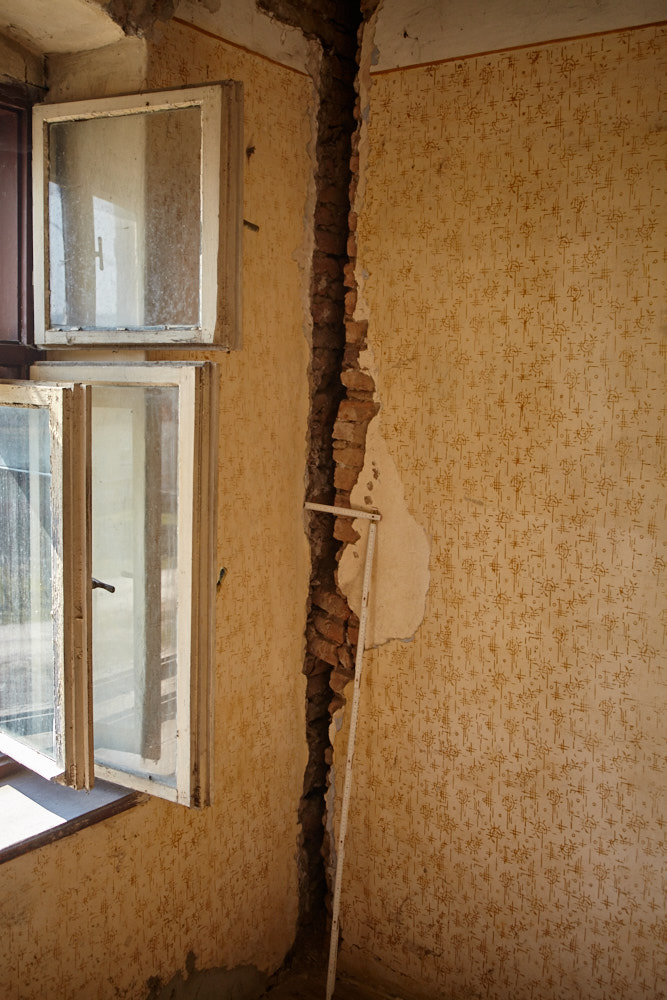 Goldbach ist ein Ort, der an einen Berghang gebaut wurde. Viele der Häuser wurden den ehemaligen Bewohnern abgekauft, um dann für den Bergbau abgerissen zu werden. Eine Widerstandsbewegung hat es dann geschafft, das aufzuhalten. Seidem sind die Häuser dem Verfall preisgegeben. Mittlerweile gibt es eine Organisation, die versucht, die alten Häuser zu erhalten. An den einsturzgefährdeten Wänden sind Eisenträher oder Holzkonstruktionen angebracht, um den Einsturz zu verhindern. An den Häusern hängen einlaminierte Informatione, welche Familie da gewohnt hat, bzw. welchen Zweck das bauwerk früher hatte.