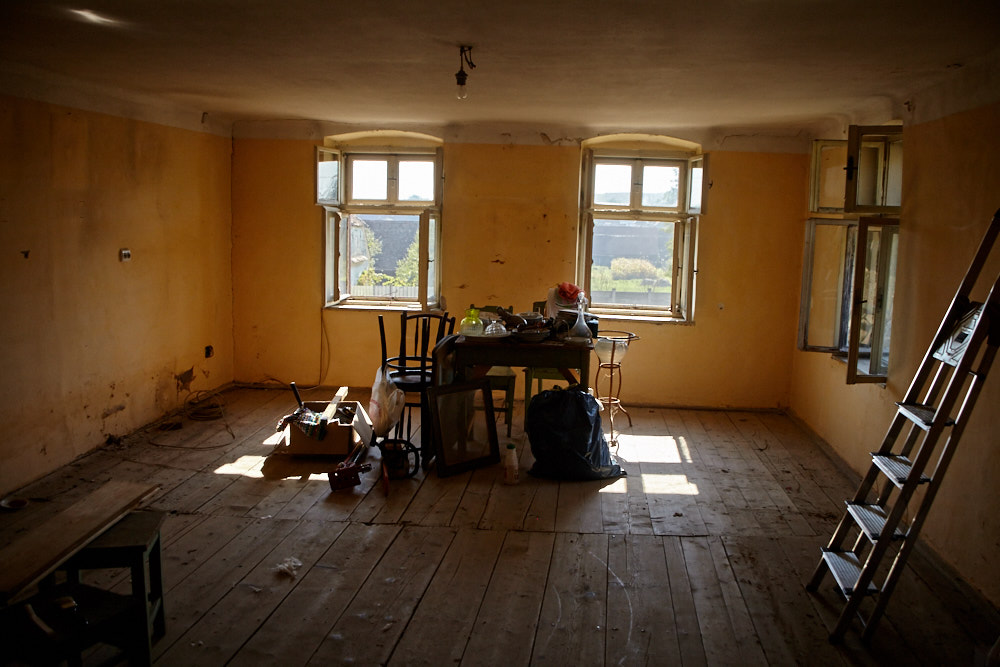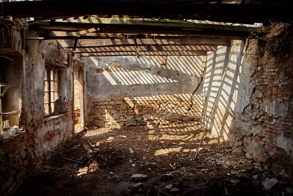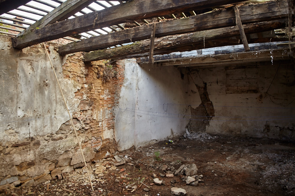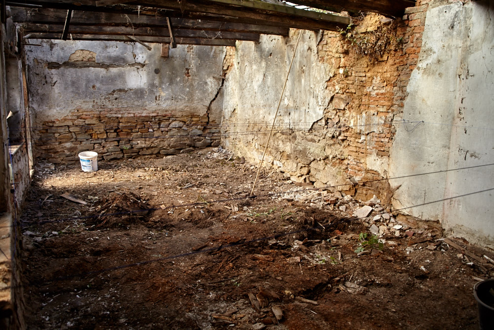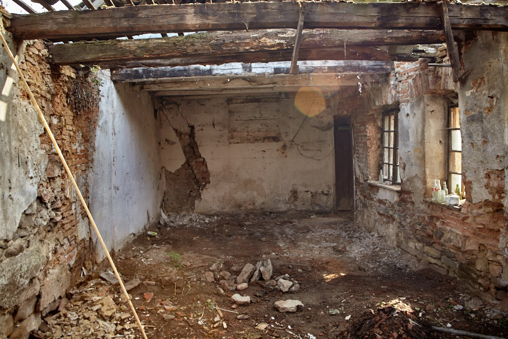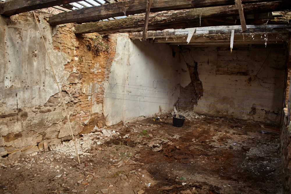 Elisabeth ist ungewohnt still. Wir gehen die paar Meter hinauf bis zum Eingang. Auch der Hof zwischen dem Haupthaus und der ehemaligen Werkstatt ist mit mannshohen Pflanzen zugewuchert, was darüber herausschaut ist der klägliche Rest des Dachstuhls. ‚Das hätte ich nicht gekauft‚, ist ihr erster Kommentar, als sie wieder Worte findet. Na ja, wenn ich ehrlich bin, hätte ich mir lieber eine andere Reaktion gewünscht. Ich habe aber auch schon ein Bild im Kopf, wie das Ganze aussieht, wenn es fertig ist. Wir gehen noch durchs Haus, dann wird es auch schon Zeit, zurück zu fahren, das Abendessen wartet.