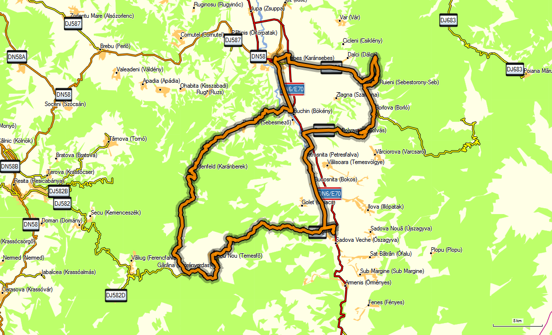 Ein Schäfer mit seiner Herde passiert den Ort, wir folgen kurze Zeit später talwärts und genießen die herrliche Aussicht über das Banat. Unter einem schattigen Baum sitzt ein Schäfer und grüßt von weitem, zwei seiner Hunde laufen uns entgegen und wollen uns vertreiben. Die Schotterstraße wird zum Betonweg, dann zur Asphaltstraße, während wir dem Fluß Valea mare folgen. In Buchin biegen wir links auf die E70 ab in Richtung Caransebes, wo wir Mittagessen wollen.